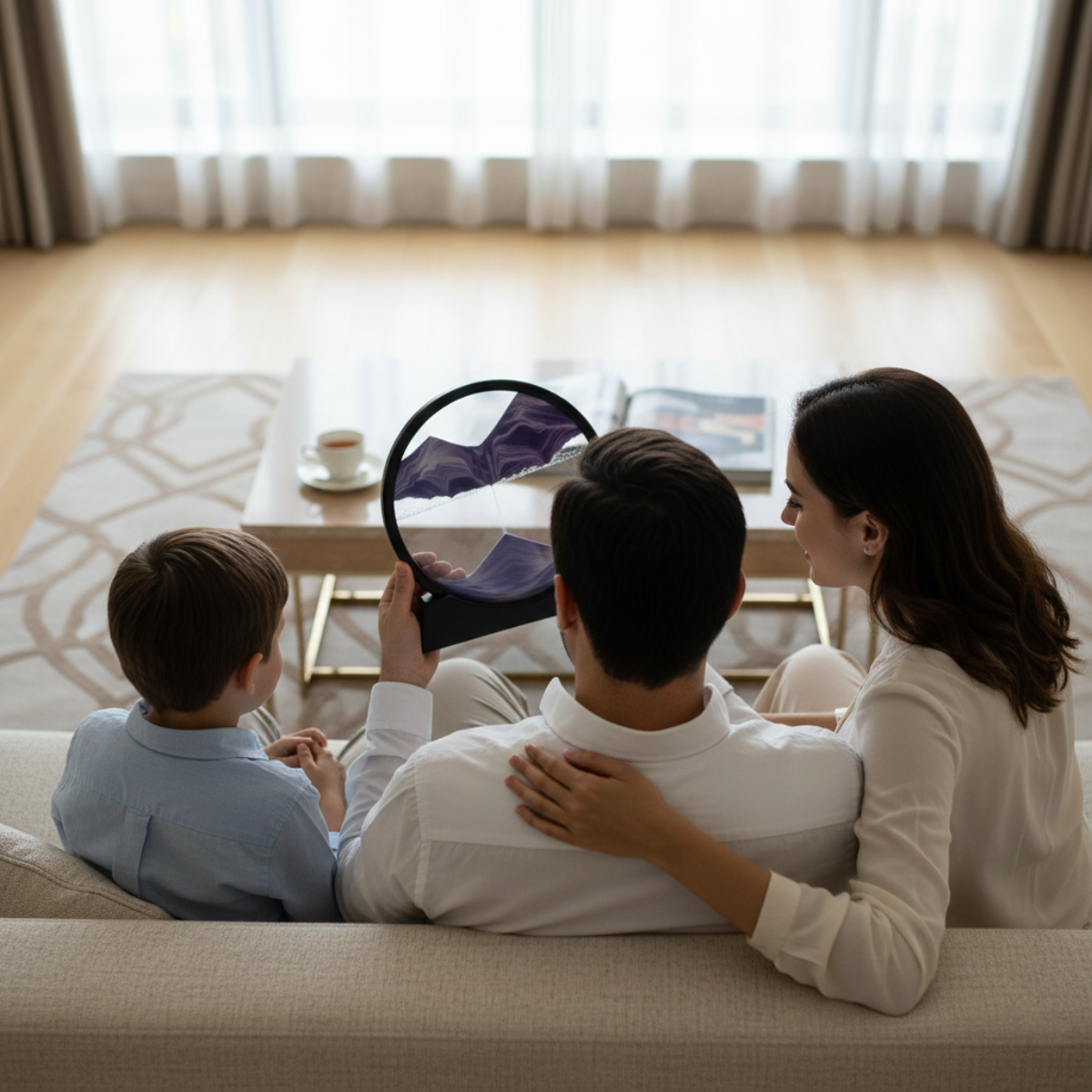 Chaque rotation crée un paysage unique qui ne se reproduira jamais à l'identique, faisant de chaque sculpture une œuvre éphémère et personnelle. Nos séries, comme la Série Éden, sont produites en quantités maîtrisées dans nos ateliers pour garantir une qualité de finition artisanale constante.
