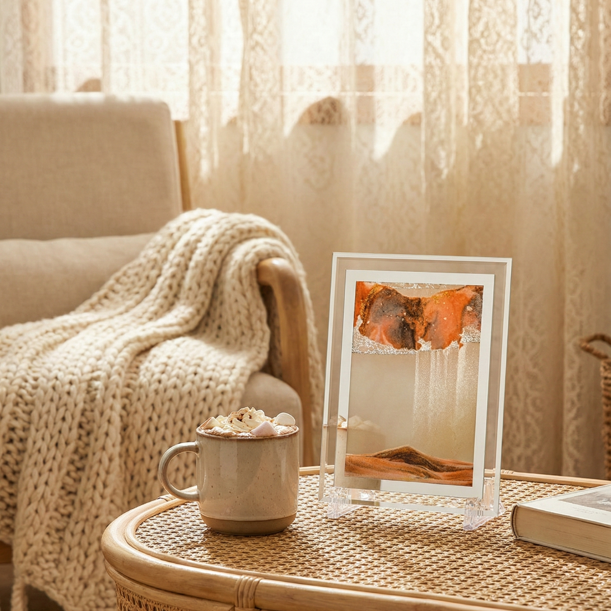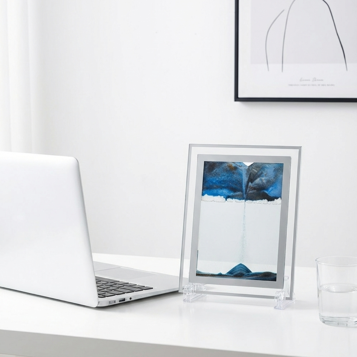 La pureté du mouvement dans un écrin de transparence. Conçue pour capturer l'essence même de l'art cinétique, l'édition prisme cristallin privilégie une esthétique minimaliste et aérienne. Cette sculpture de table transforme chaque écoulement de sable en une fresque géologique miniature, offrant une pause méditative bienvenue dans votre environnement quotidien. C'est l'expression la plus pure de la philosophie Fluxion : la clarté en mouvement.