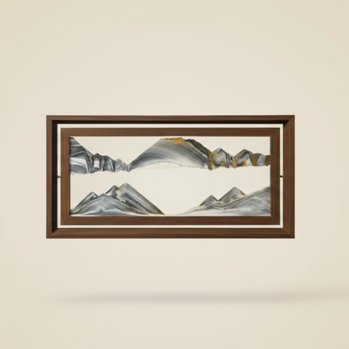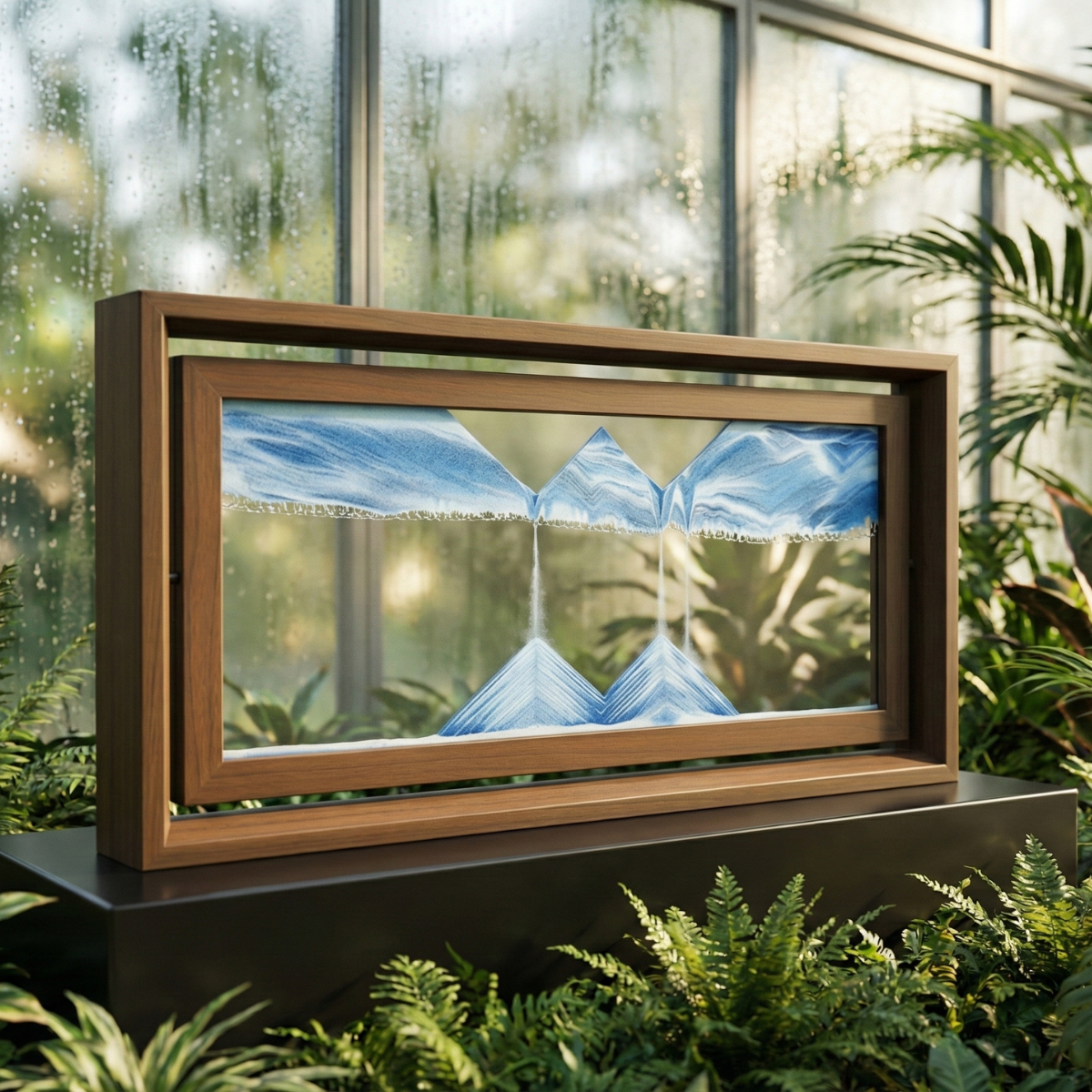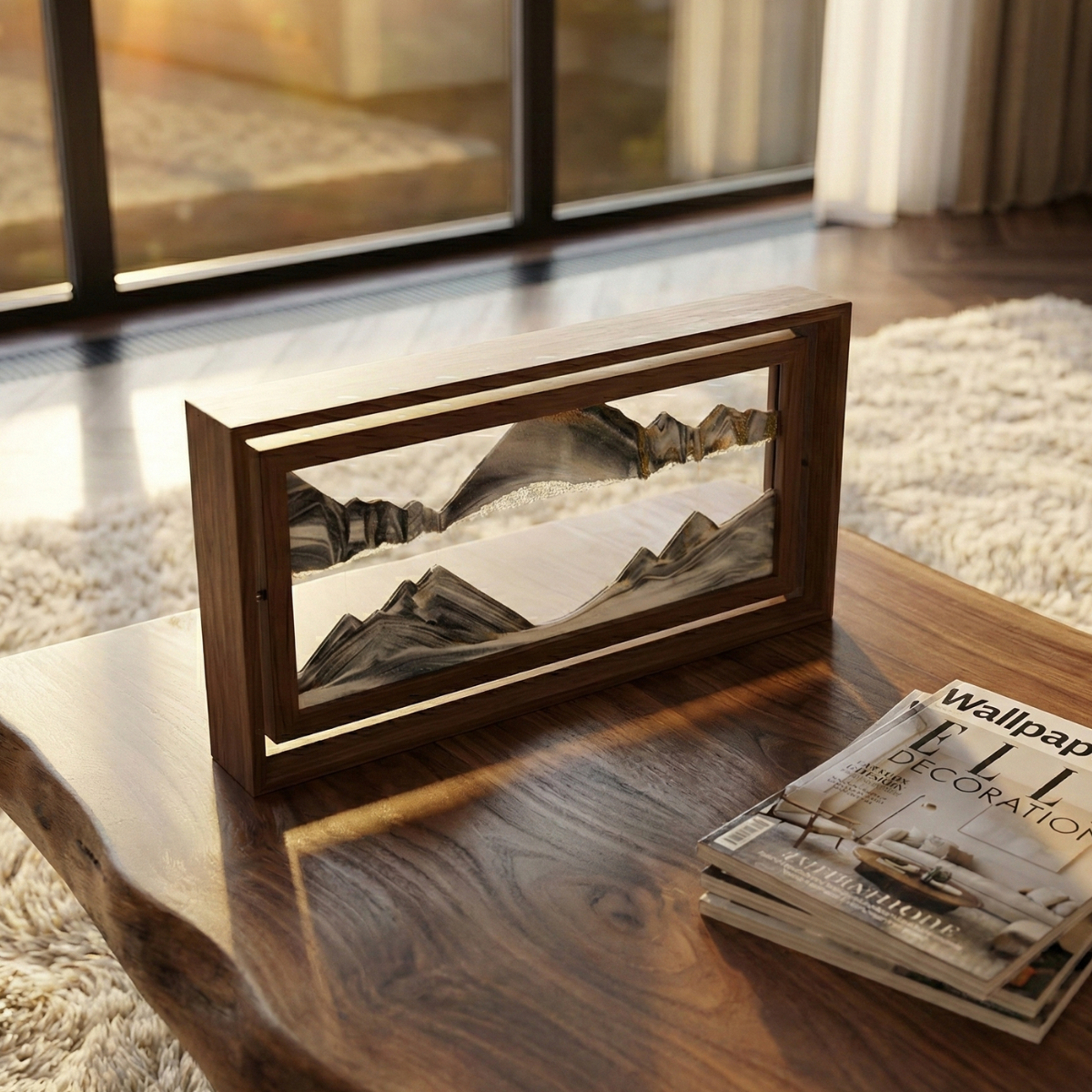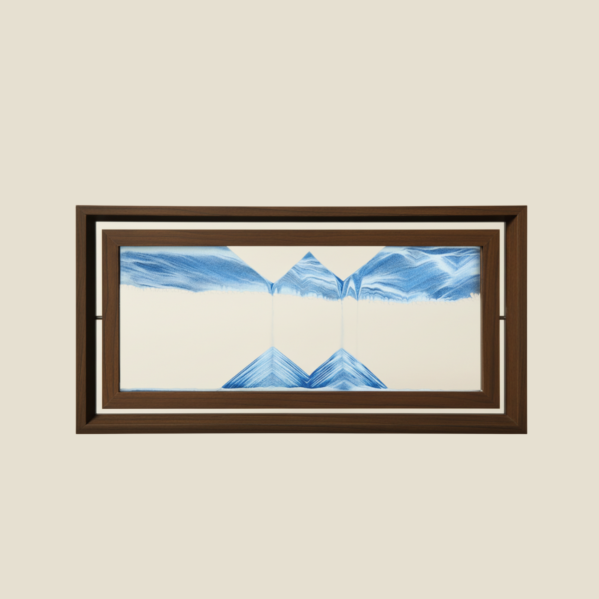 Chaque pièce invite à une immersion dans la sérénité. À travers le verre minéral, le sable s'écoule avec une régularité presque méditative, dessinant des silhouettes éphémères qui ne se répéteront jamais. C’est une sculpture cinétique où le temps devient une matière tangible, sculptée par la gravité et la lumière.